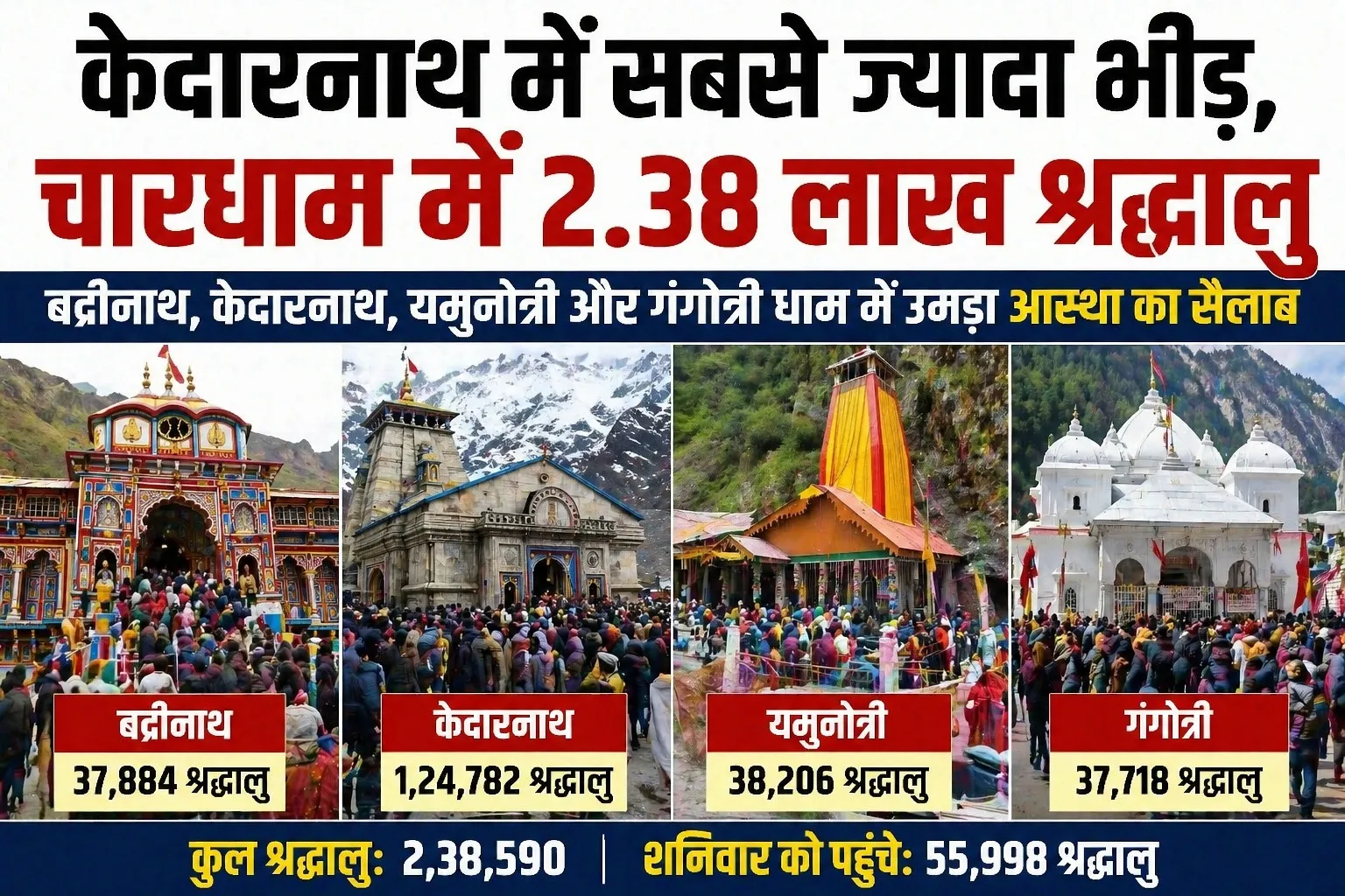 Kedarnath has the highest crowd with 2.38 lakh devotees in Char Dham.